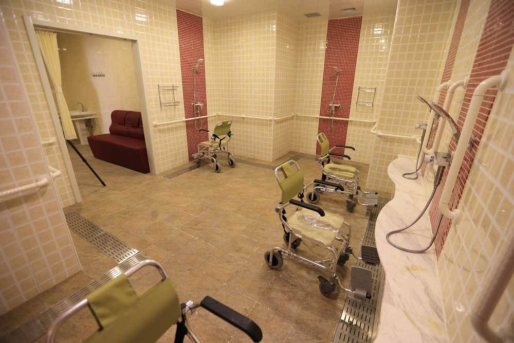 在生活照料方面,机构更是细致入微、贴心周到,将人文关怀融入每一个细节。机构以“家”为设计核心理念,总建筑面积达14200平米,设置床位278张,采用单元式居家生活照料模式,让长者在陌生环境中也能快速适应,感受到家的温暖。全院覆盖无线WiFi,各个区域均配备独立的护理站和24小时应急响应呼叫系统,确保长者有需求时能得到快速响应。楼层布局人性化,一层设有六人间、三人间、四人间,为介助、介护长者提供居住,配套有护理站、配餐区、就餐区等设施;二层设有双人间、单人间,为自理、介助长者提供居住,配套有康复大厅、药房、治疗室、足疗室、理发室等设施;三层设有双人间、单人间,配套有娱乐大厅、银行服务点等设施,全方位满足长者的日常生活与休闲需求。每一个房间内都配备了独立卫生间、呼叫系统、电视机、冰箱、电话、台灯、床头灯等设施,卫生间做了防滑处理,配备了扶手,方便长者起身与活动,细节之处尽显对长者的关怀。
